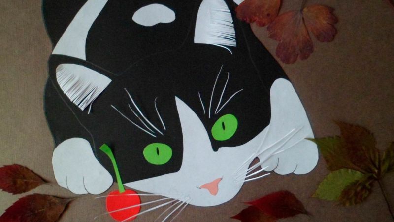 Всеки със сигурност има котка в къщата си, а децата ще се радват да направят това красиво създание със собствените си ръце. Децата лесно могат да изработват различни изделия от хартия, а ръчно изработените апликации се харесват на всички без изключение заради своята простота.