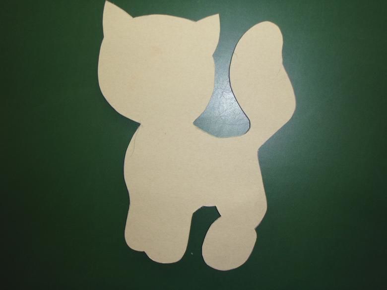 - Първо нарисувайте контура на котката на хартия, след това го прехвърлете върху плата и го изрежете;