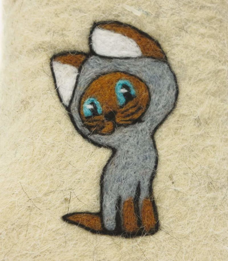 - Първо, нарисувайте контура на филцовата котка върху материала или използвайте готов шаблон и я обградете.