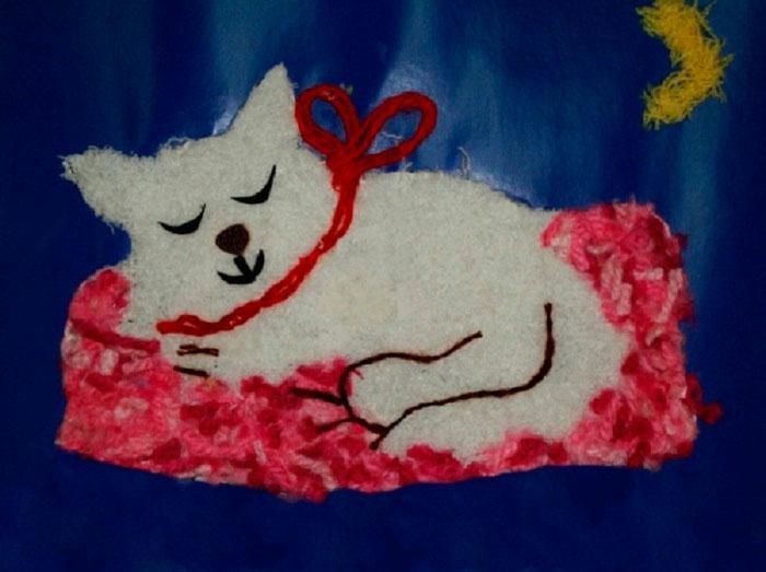 Апликиране на котка от плат, филц и хартия: лесни работилници за деца и начинаещи