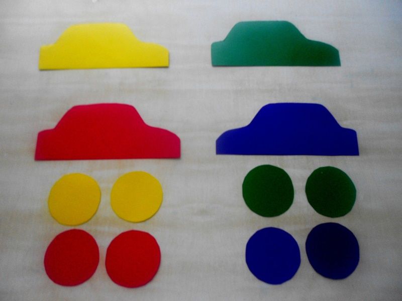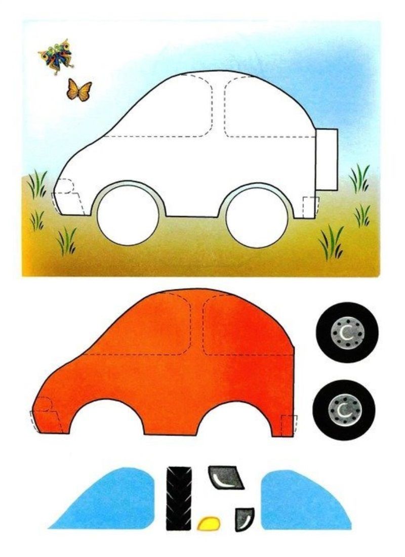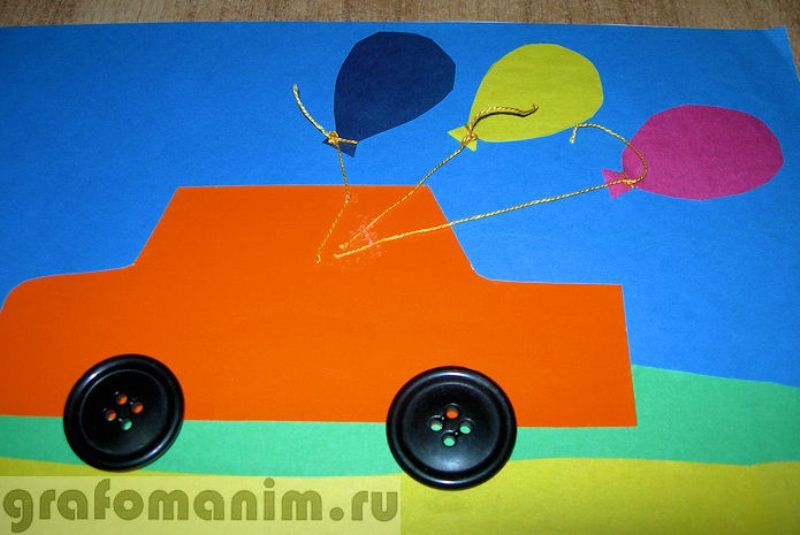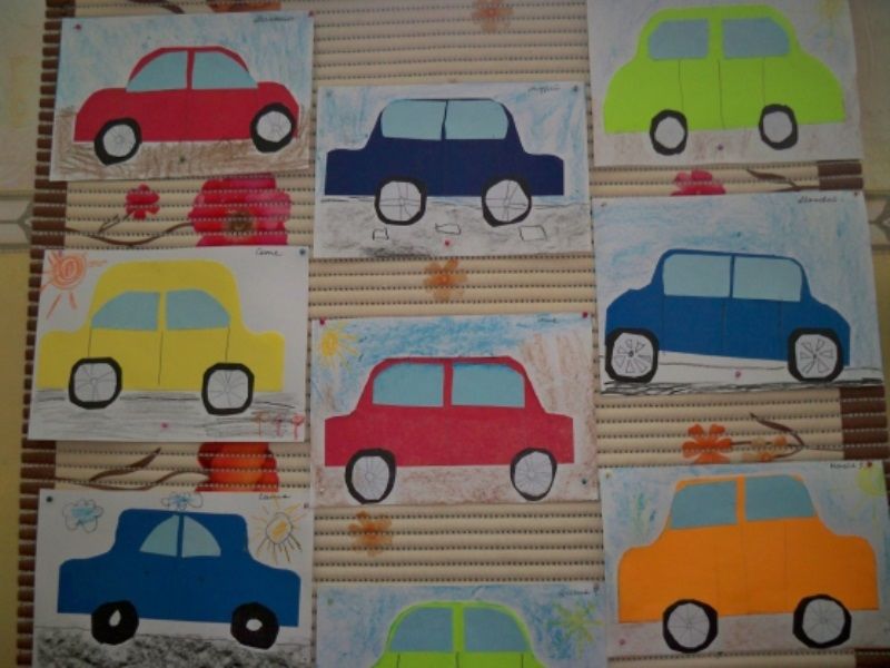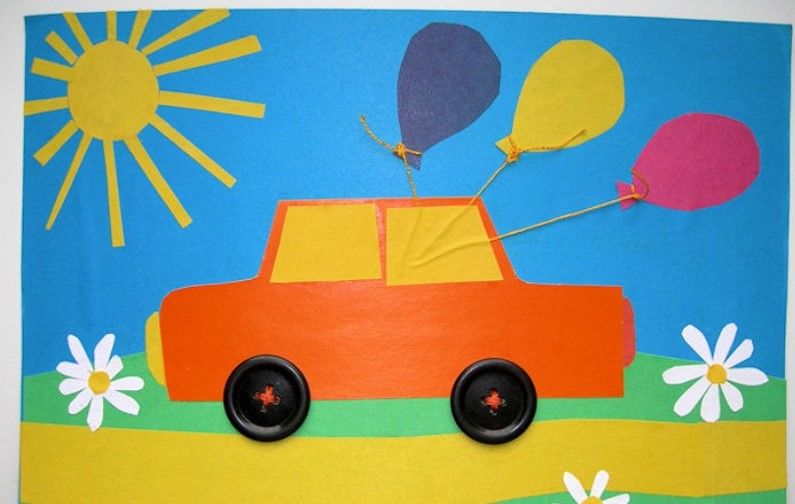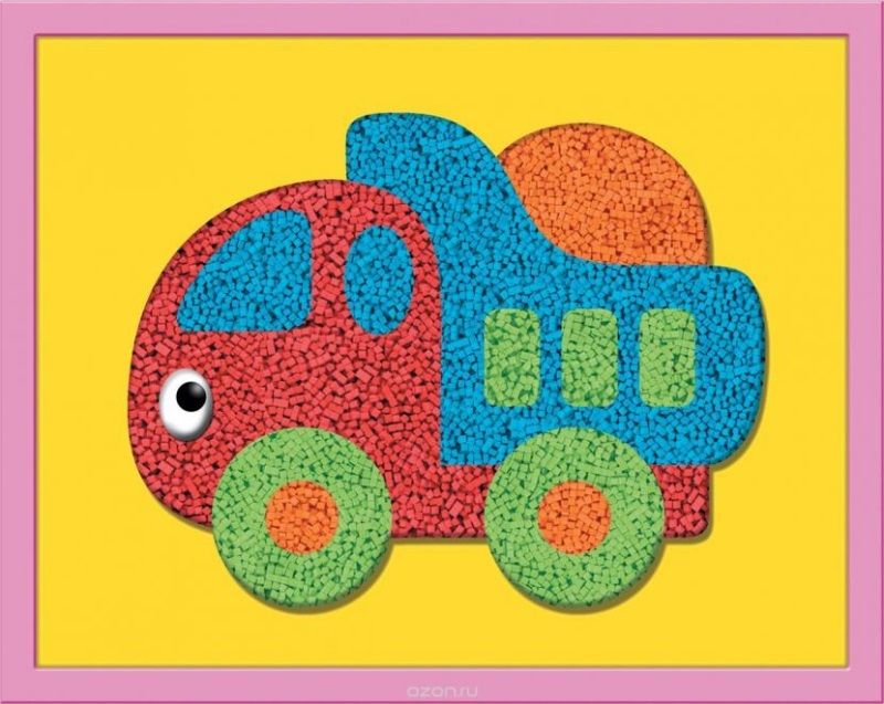 Формата на автомобила и цветовете могат да се избират само по желание. Основната цел на тази работа е да се развият двигателните умения чрез работа с малки части.