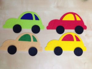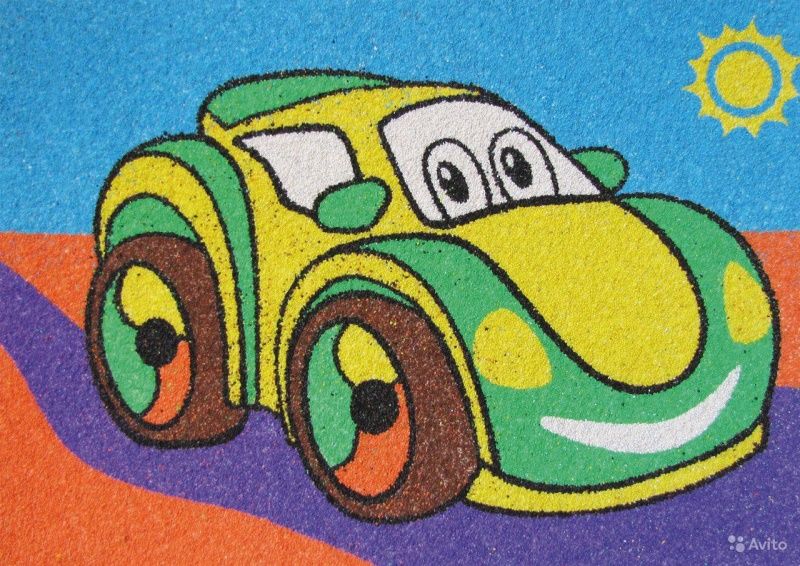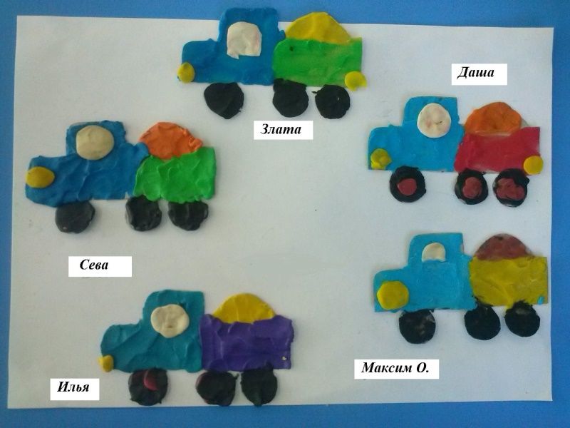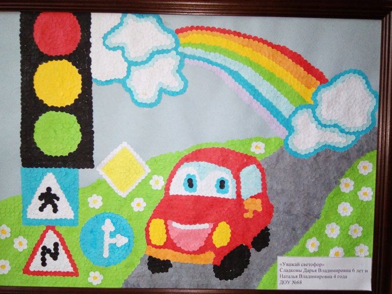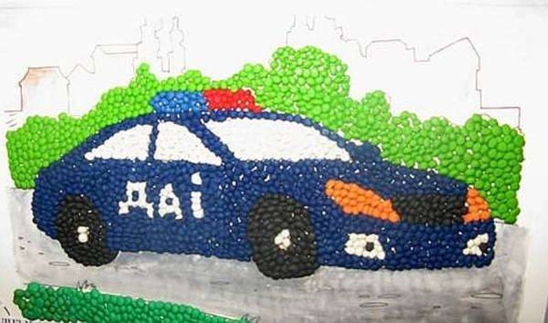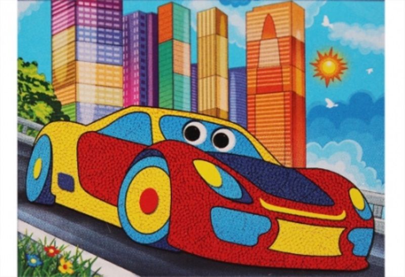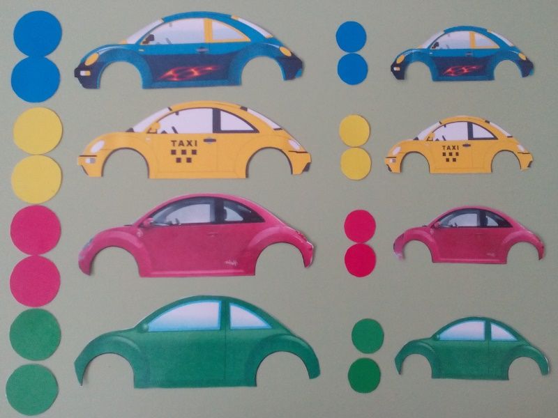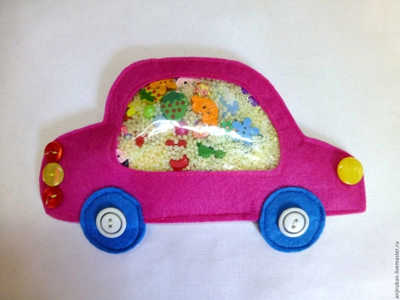 Формата на автомобила и цветовете могат да се избират само по желание. Основната цел на тази работа е да се развият двигателните умения чрез работа с малки части.