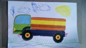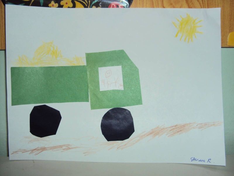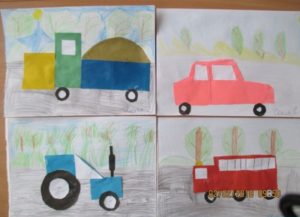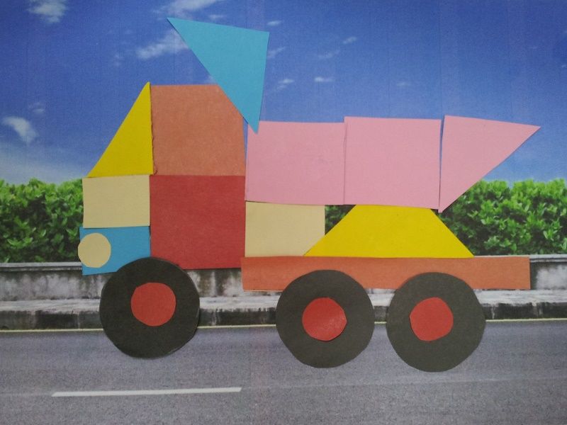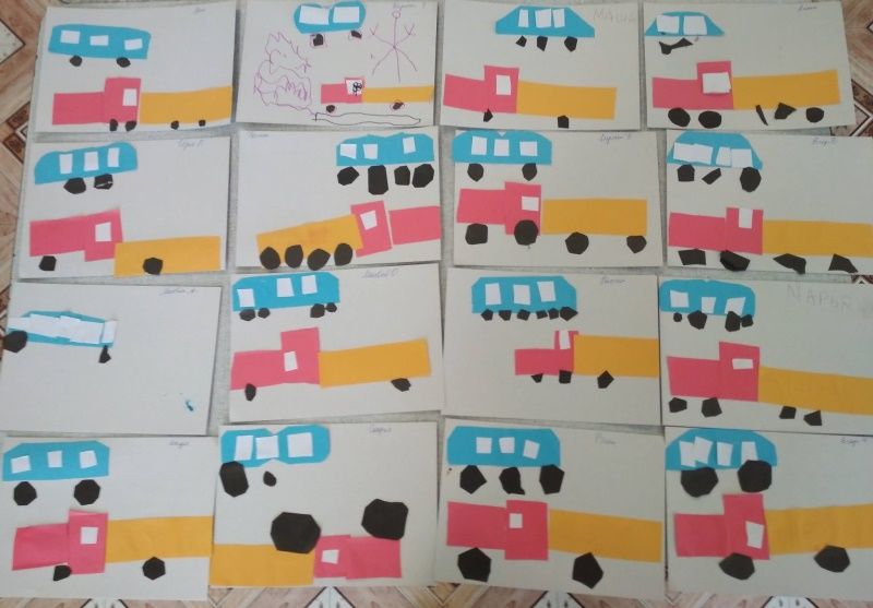 Децата обичат да виждат масивни и големи превозни средства, които ги удивляват с величието си. Ето защо, ако детето е впечатлено на улицата от това, което е видяло - това е чудесен повод да направите колаж с него у дома. Необходими материали: