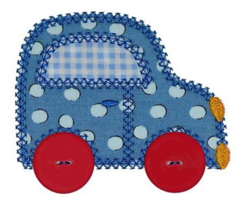 Възможно е също така тази работа да се извърши върху отделно парче плат, което машината да използва като кръпка. Ако творбата е предназначена за детска градина или лагер, е подходящо да се добави име или първите букви от инициалите. Това може да се направи и със стандартни шевове.