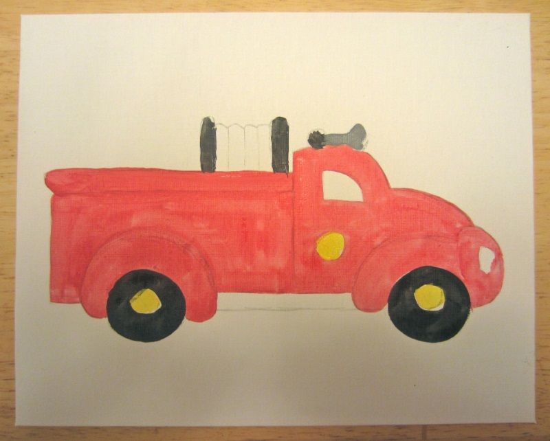 Можете да добавите път под пожарната кола или облаци в небето, за да завършите сцената по свой вкус. Апликацията за пожарна кола е чудесен начин да научите детето си на тази професия, докато работи.