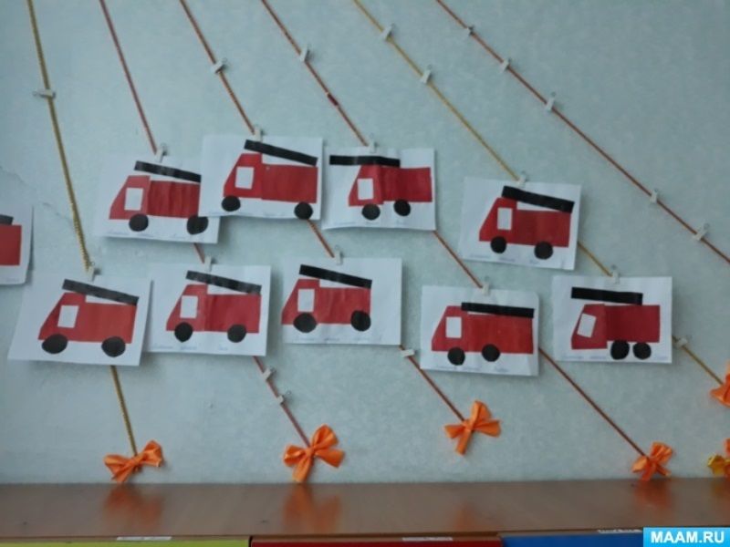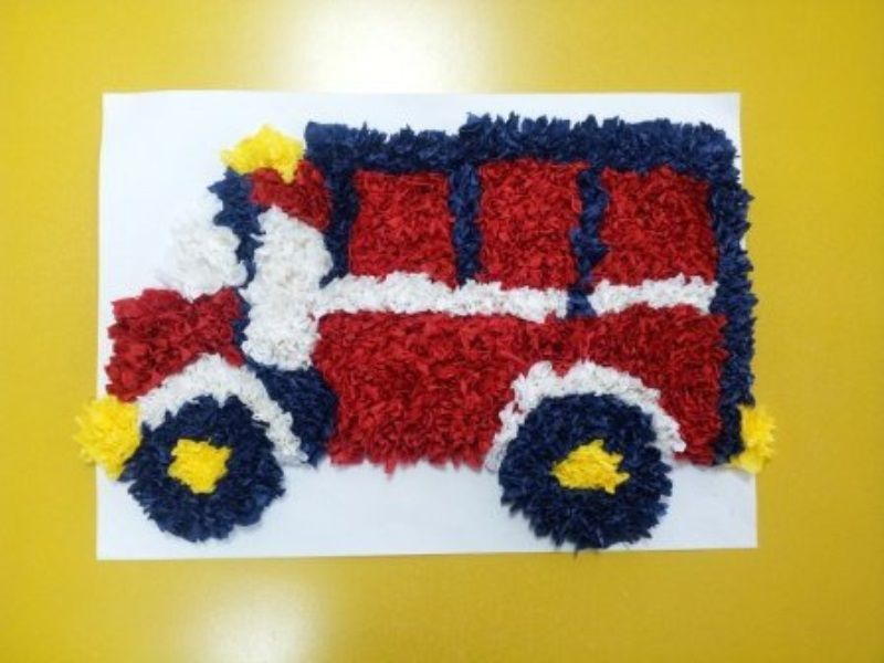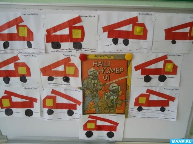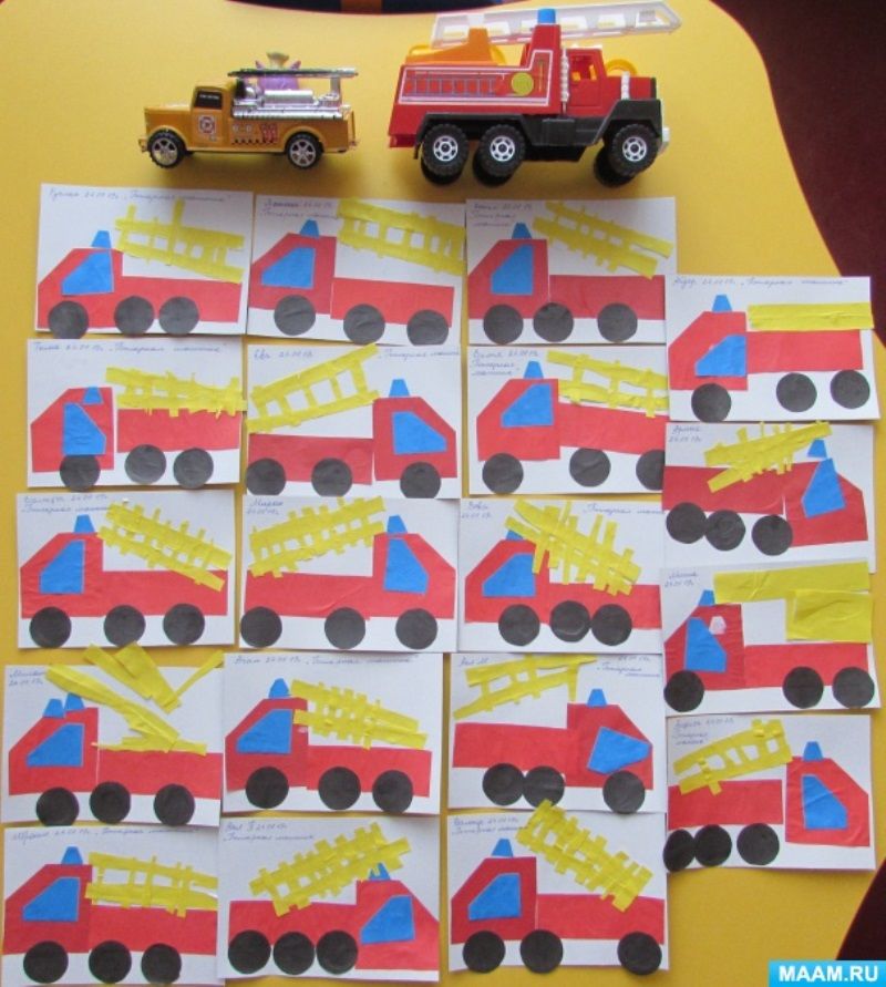 Този занаят е толкова прост, че дори малки деца могат да го направят. Ако детето е малко по-голямо, то може дори да помогне за изрязването и проследяването на модела. Материали, необходими за изработване на пожарна кола в по-голямата група:
