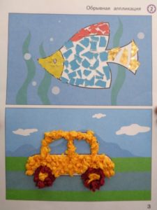 Децата се затрудняват да рисуват фигури, като в ранните етапи те се отпечатват с принтер върху цветна хартия. Родителите трябва да участват в процеса, за да може бебето да наблюдава действията и да ги повтаря. Инструкции за проста апликация: