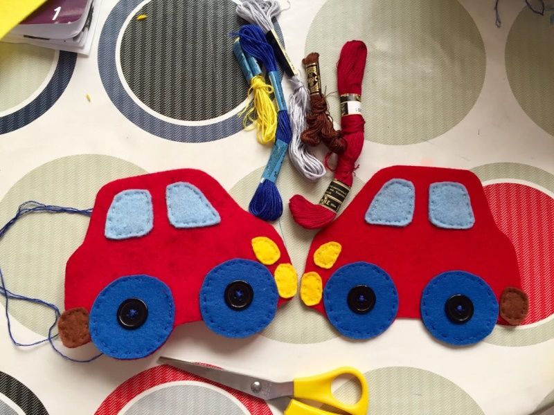 След това трябва да изрежете кръста отделно и да го поставите върху тялото. Изрежете поотделно червените мигачи и черните колела, в зависимост от размера на цялото изделие.