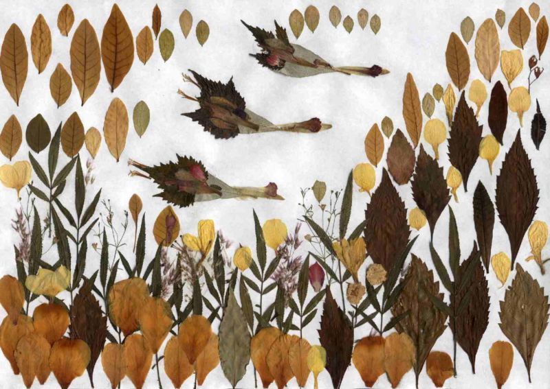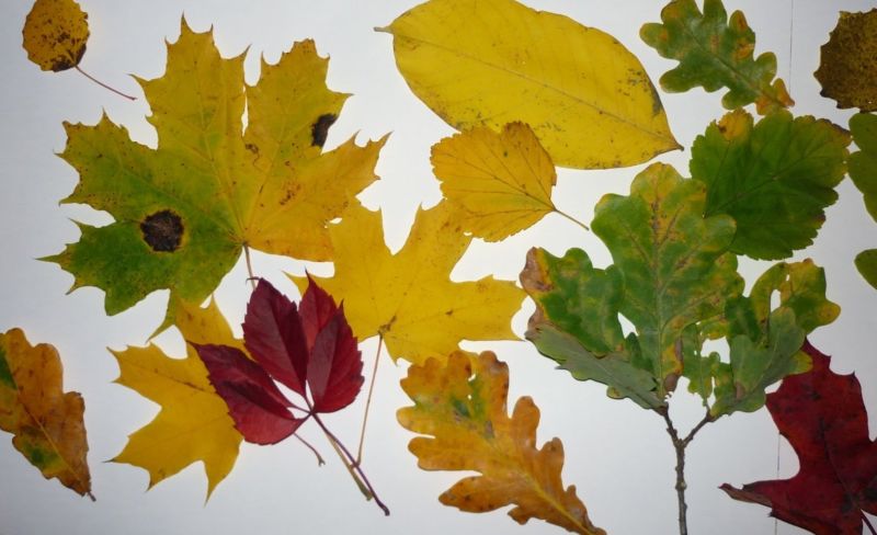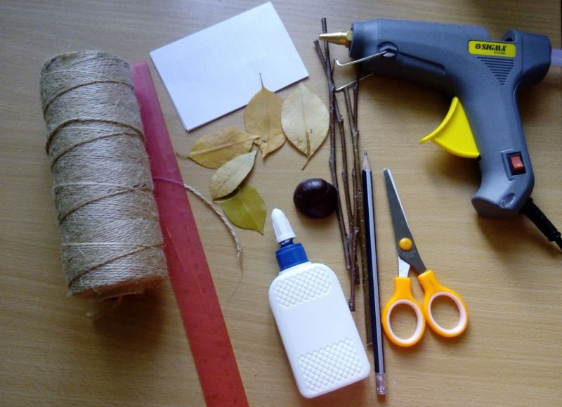 Материалът за този занаят трябва да се подготви предварително, като се изсушат листата. За да не изглежда композицията тъжна, намерете листа, които запазват ярък цвят след изсушаване. Например червените листа на дивото грозде или жълтите листа на липата.
