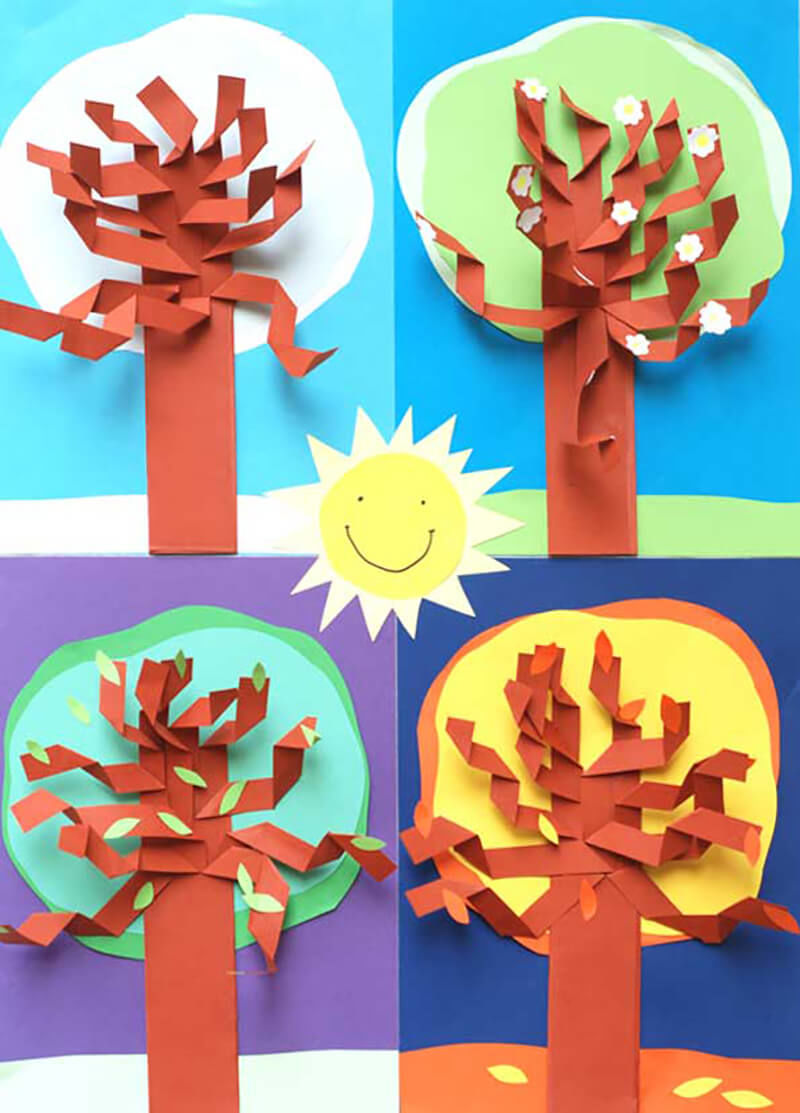 Ръкоделие на тази тема може да се прави дори с по-малките деца от детската градина. На тази възраст децата вече познават особеностите на сезоните и могат да изберат подходящата цветова палитра за приложение.