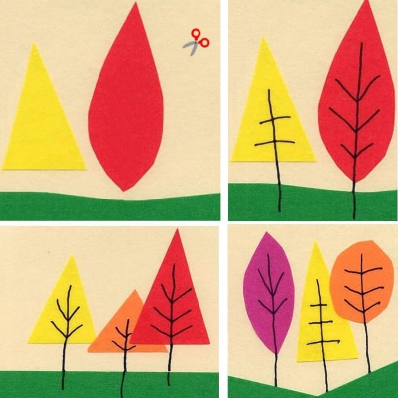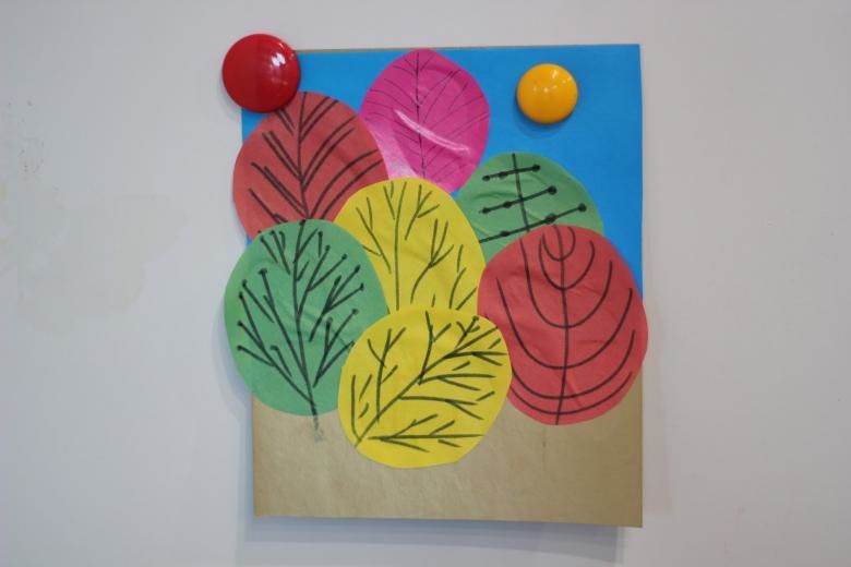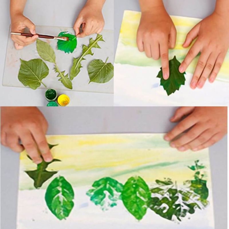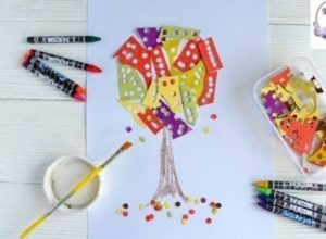По-големите деца могат да нарежат листата на по-малки парчета и да направят колаж.