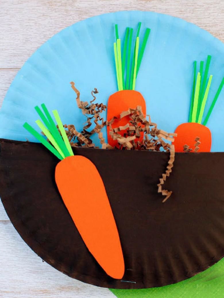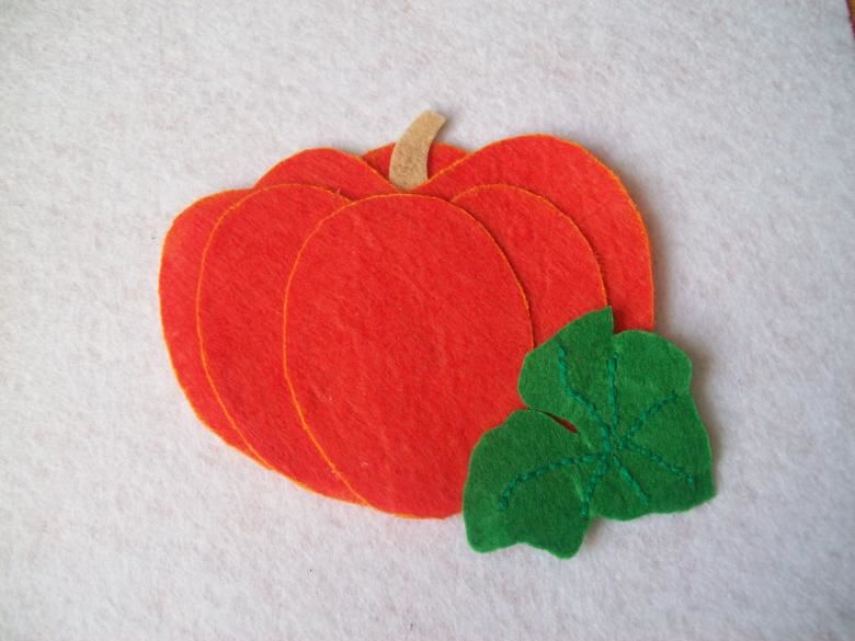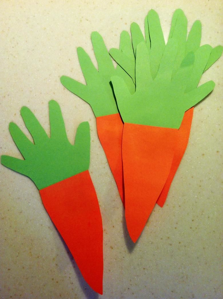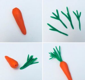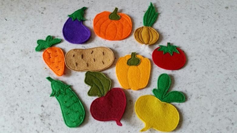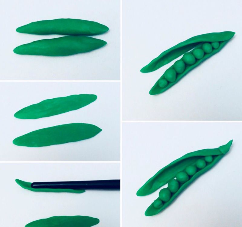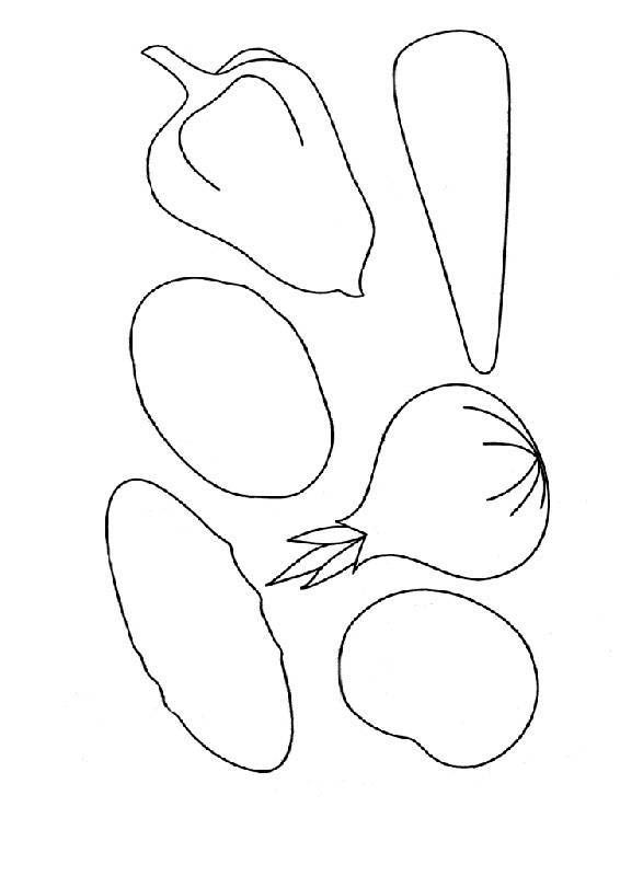 Може да се направи зеле, като се залепят няколко зелени кръгчета за долния край на основата-гушка и се нарисуват жилки на листата с молив. С други зеленчуци може да се работи по подобен начин.