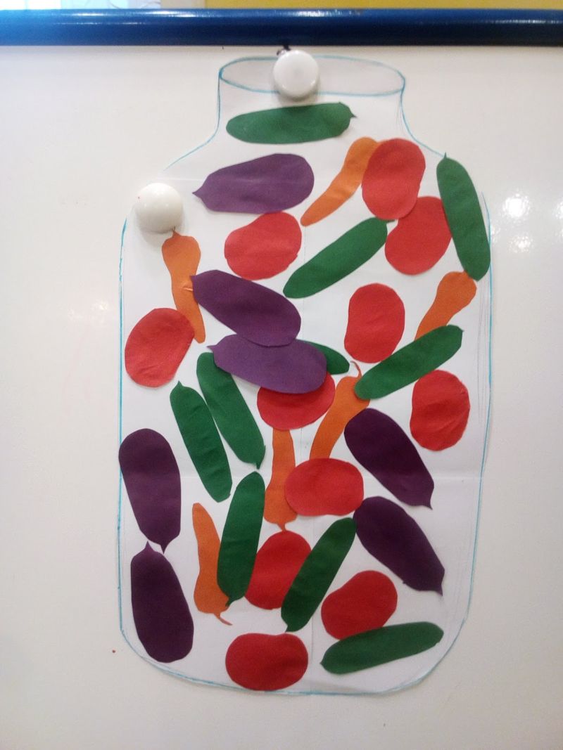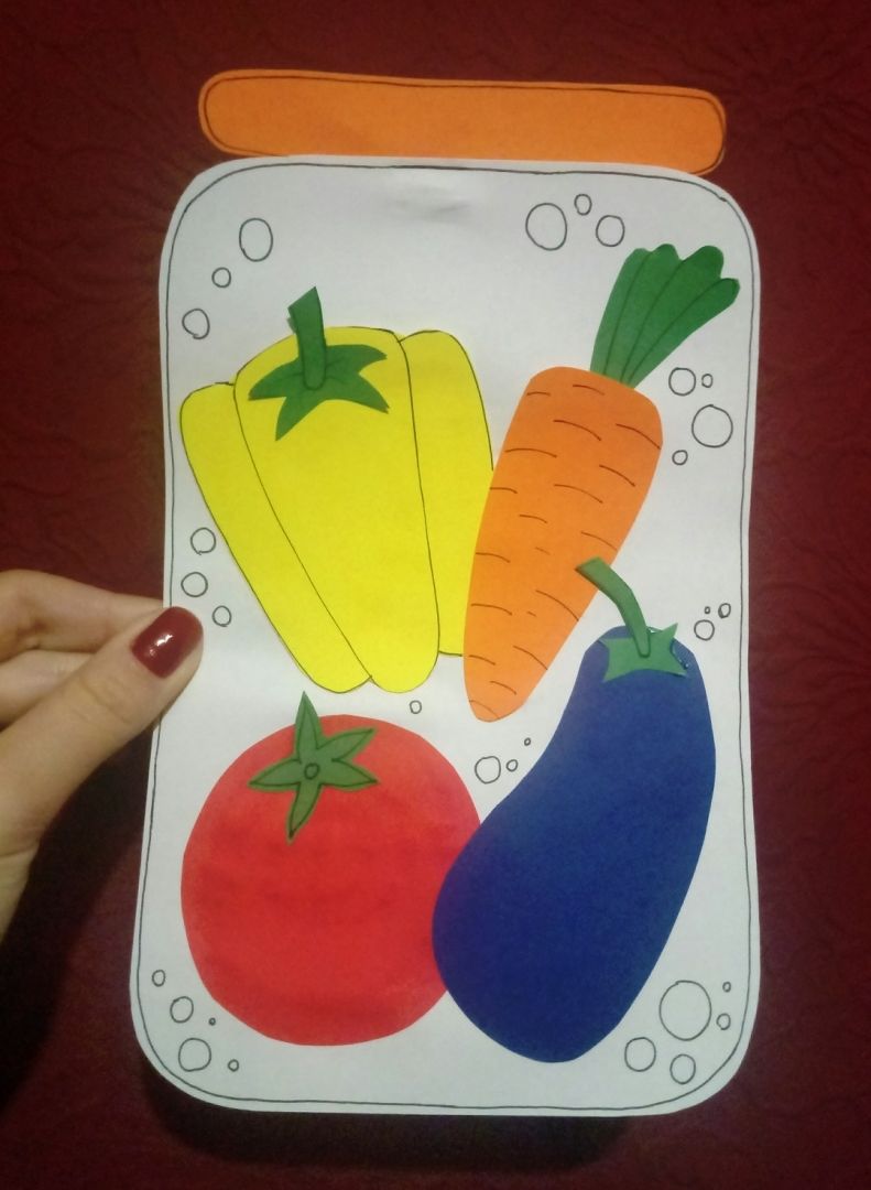 Ще бъде забавно да направите с децата колаж, наречен "Зеленчуци в буркан". За целта могат да се използват различни материали: