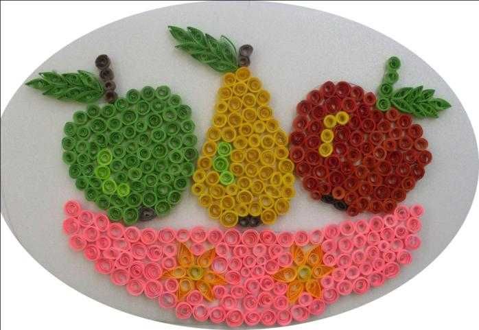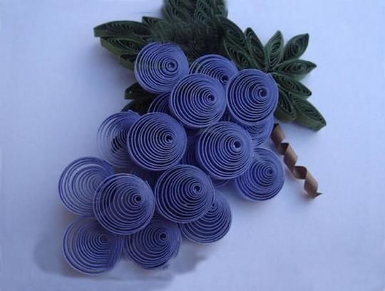 Тази техника може да се използва за апликации на плодове и зеленчуци. Оригинален вид грозд, изработен в техниката квилинг.