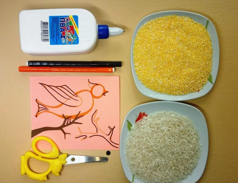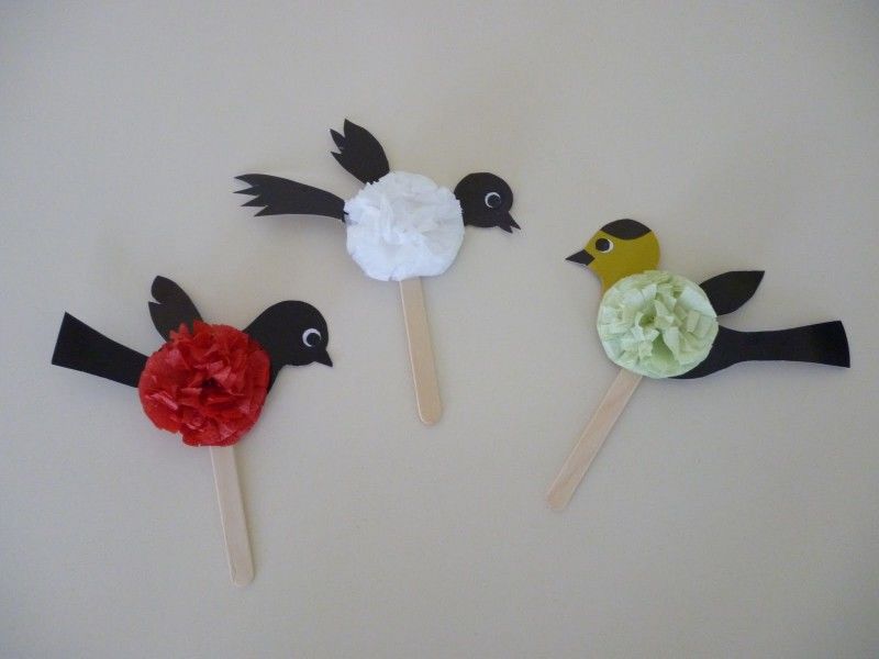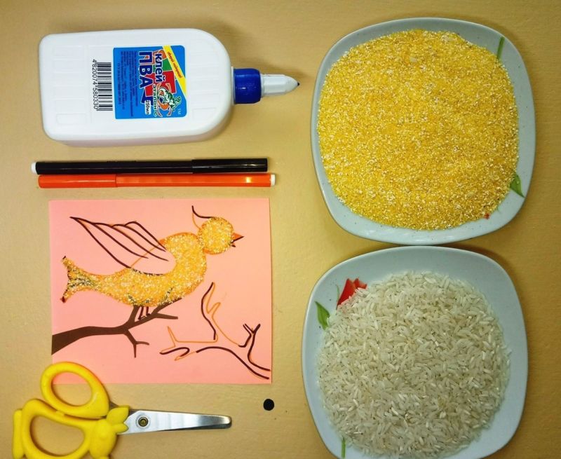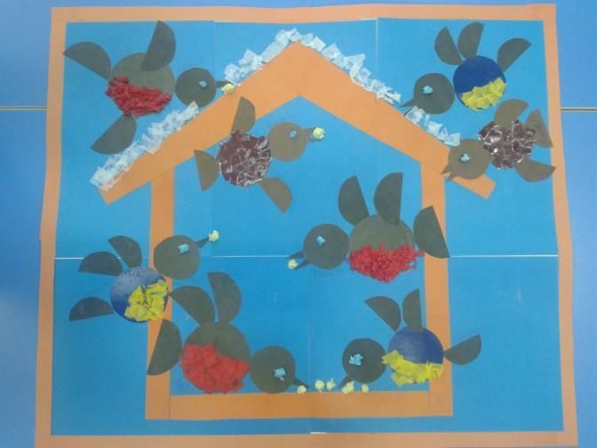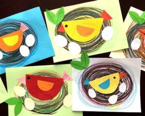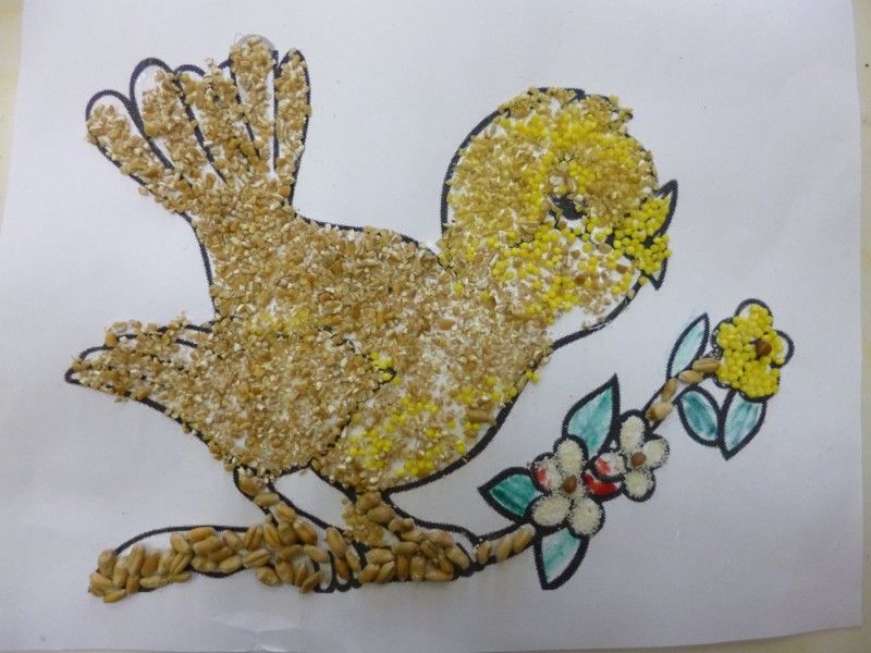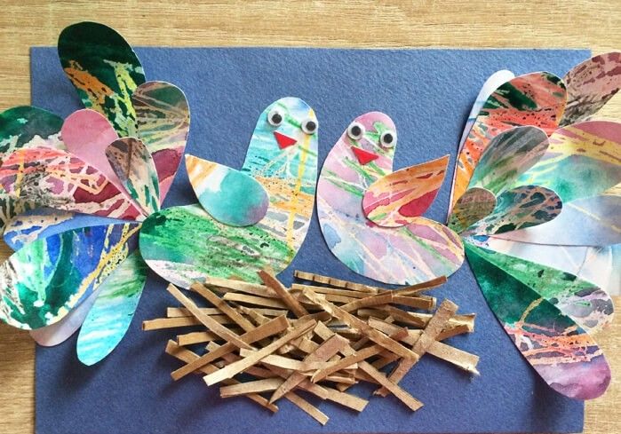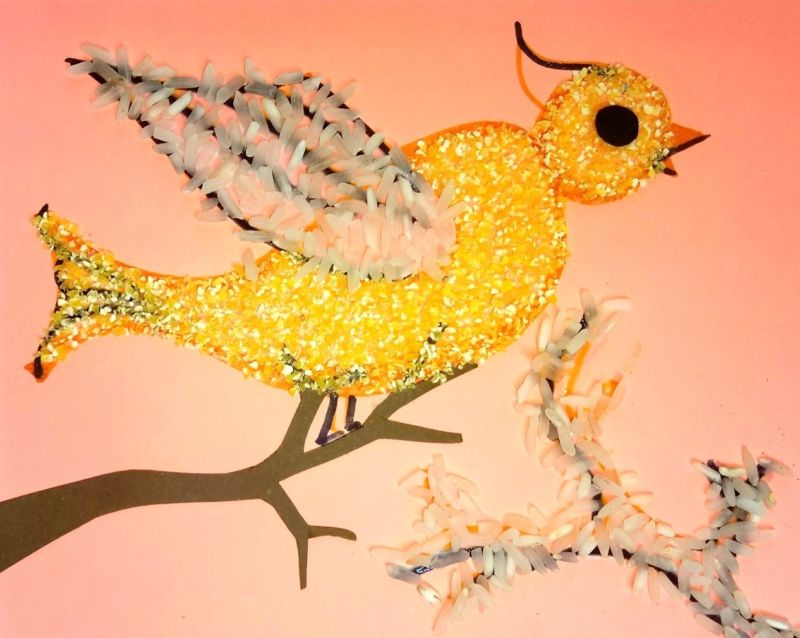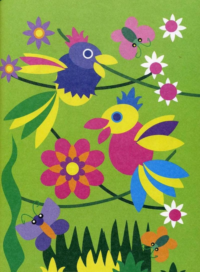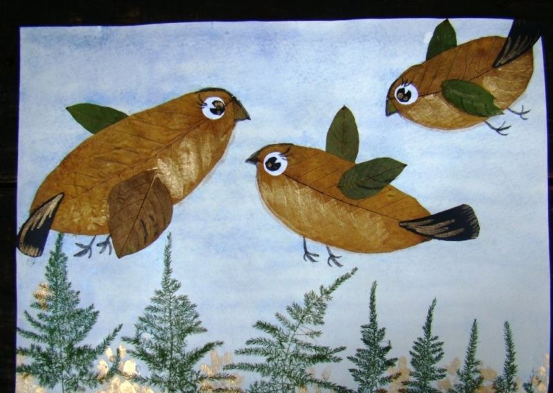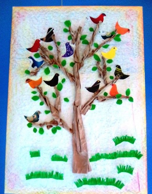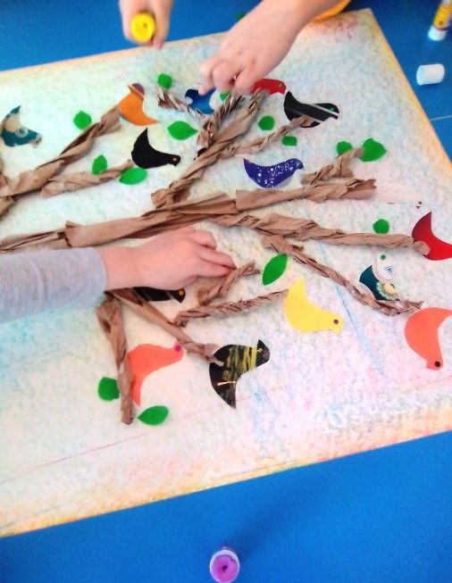 Например апликирането с откъсване е чудесен начин за развиване на двигателни умения, постоянство и въображение. Птицата (или повече птици) може да бъде нарисувана или изрисувана по шаблон, или да бъде изрязана.