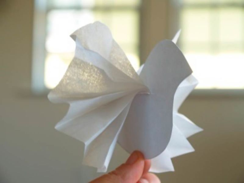Горната част на крилата ще бъде украсена с извити ленти, а трите парчета трябва да бъдат залепени заедно за по-голяма здравина.