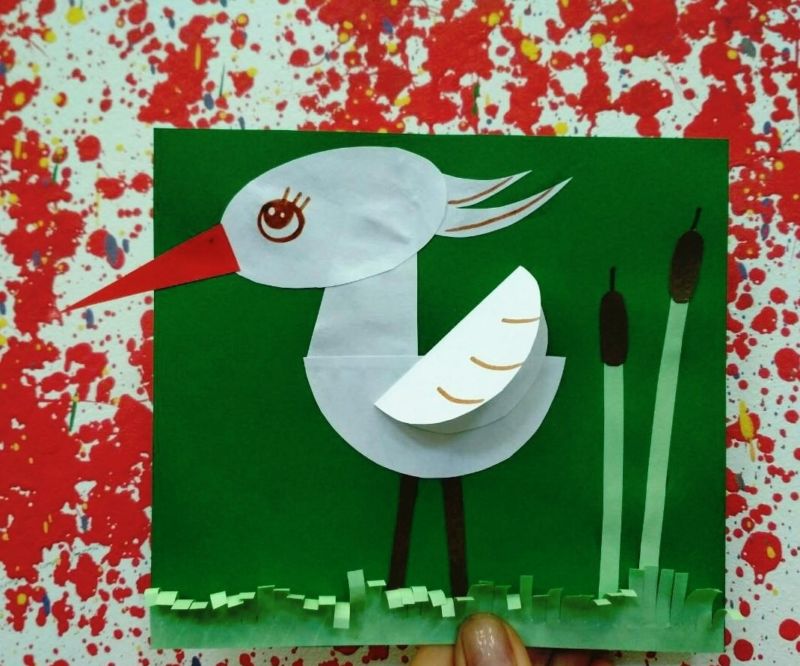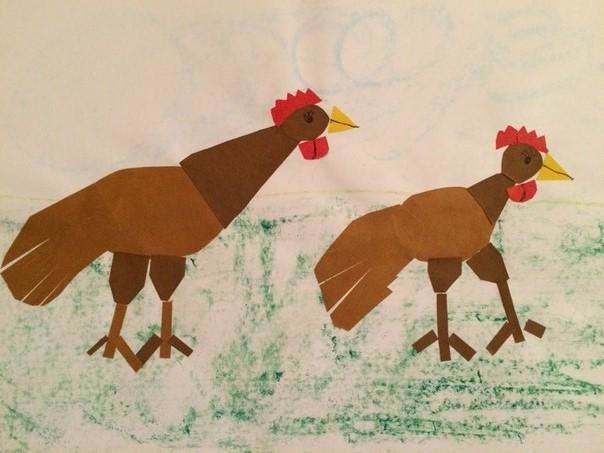 Например в детската градина е забавно да се направи колаж на домашни птици и това помага на децата да се запознаят с различните членове на птичето семейство.