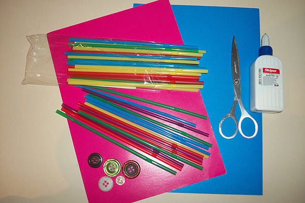 За тази работа ще ви трябват сив вълнен конец (може и канап), бяла, жълта и черна хартия, син картон, лепило, бял флумастер (може да използвате коректор) и ножица.