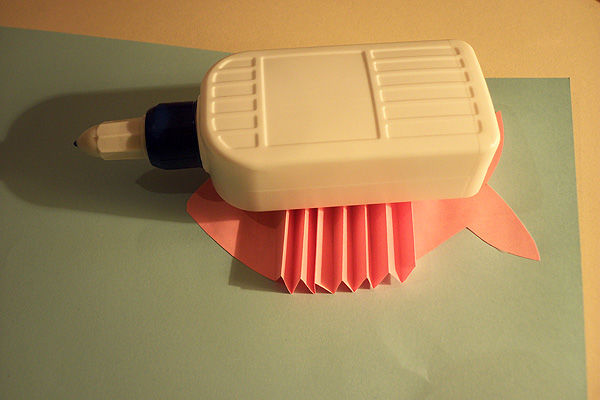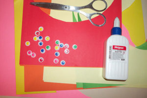 - изработи конфети от цветна хартия с перфоратор - кръгчета, които да се залепят като оперението на крилата и опашката;
