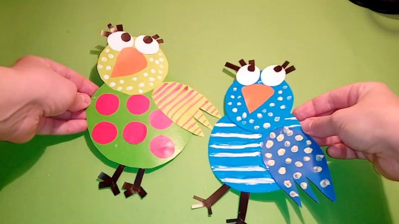 Апликиране на птици - лесни работилници от хартия, листа, квилинг за всички възрастови групи деца