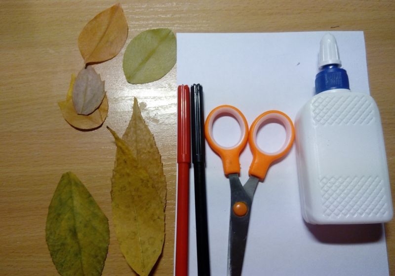 Много е удобно да се използват естествени материали за апликации - през есента листа в различни цветове, изгладени или съхранени в книга, ще се ползват идеално за това. Освен това ще трябва да приготвите син картон, бяла и жълта хартия, лепило, ножица и пластилин.