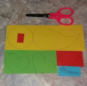 Изрежете човката от червено или бордо листо, а от по-светъл нюанс на листото можете да изрежете птичи гребен.