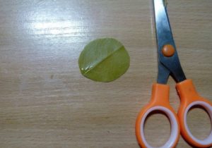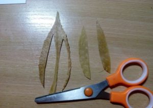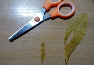 В центъра на листа трябва да се залепи дебело зелено листо, което трябва да е с овална форма и да не е повредено. Със суха, чиста кърпа може да притиснете и загладите листата.