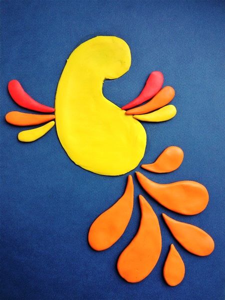 Пластилинът е отличен за създаване на триизмерни произведения. Вярно е, че много малките деца трудно ще се справят с този материал без възрастен, но по-голямата група с удоволствие ще се справи с пластилиновата апликация на птици върху клони. Ето един пример за такава работа.