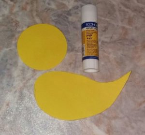 От кадифена сива или светлокафява хартия се изрязват два големи кръга (телата на птиците) и два по-малки кръга (главите).