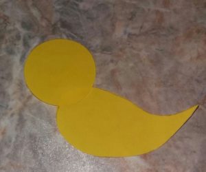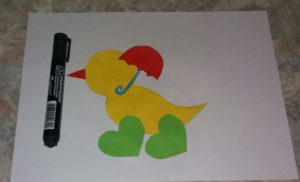 Клюнът се залепва към главата, а над него очите се рисуват с бял флумастер (коректор).