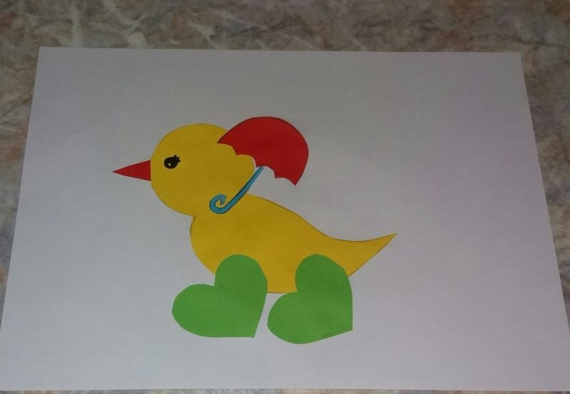 Най-ефективният начин да се покаже работата с апликация на примера на домашните птици - с тях децата най-често, ако не лично, то на снимки в книгите, в азбуката, на кубчетата и т.н., така че дори децата няма да е трудно да си представят патица или петел.