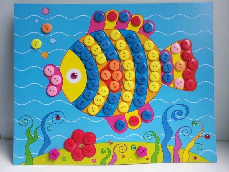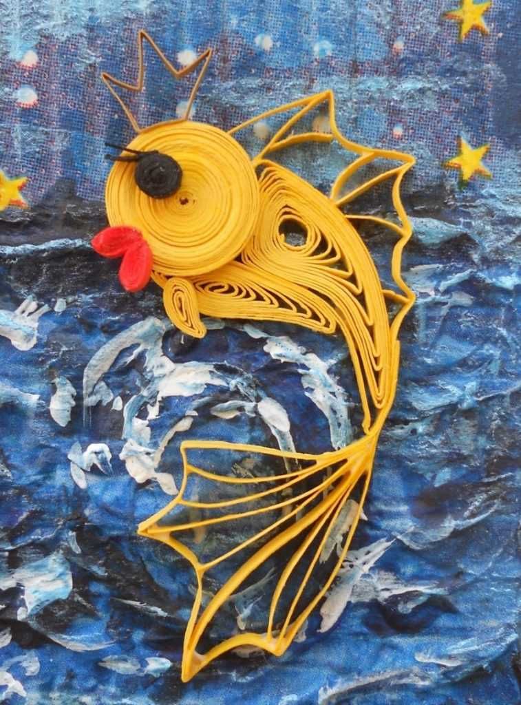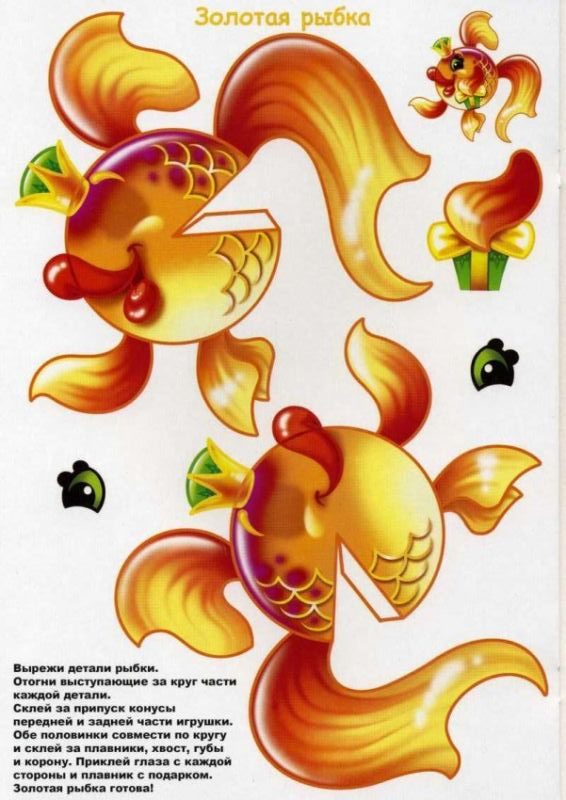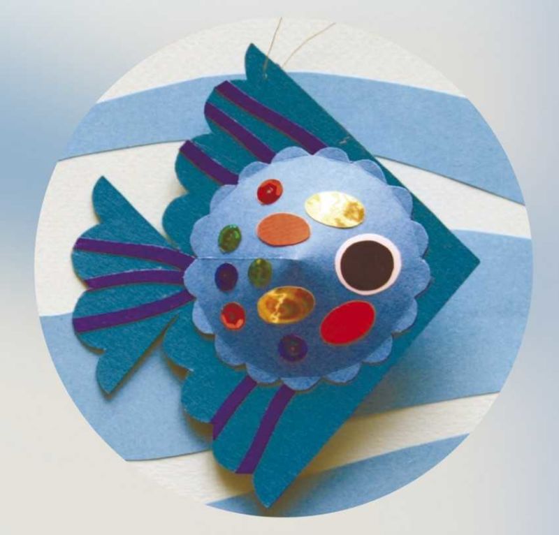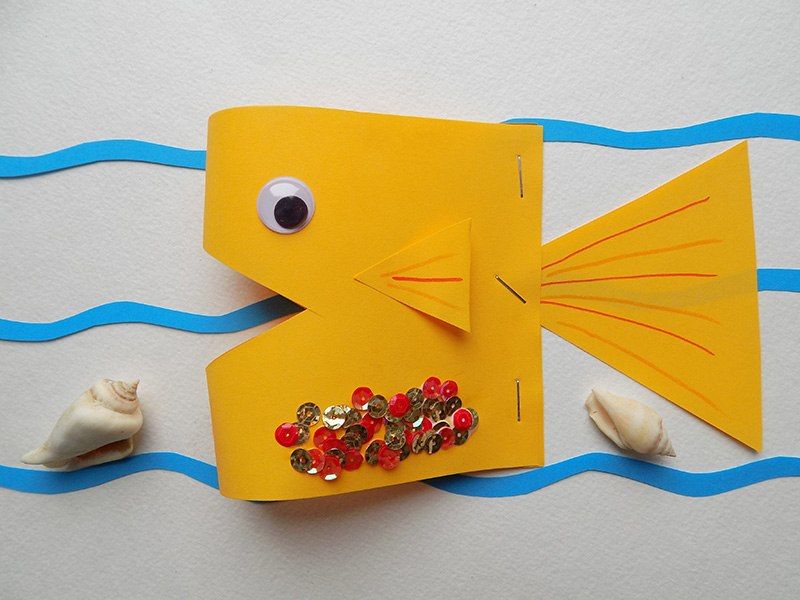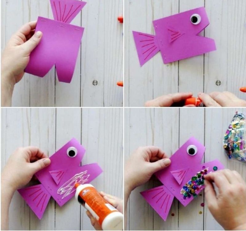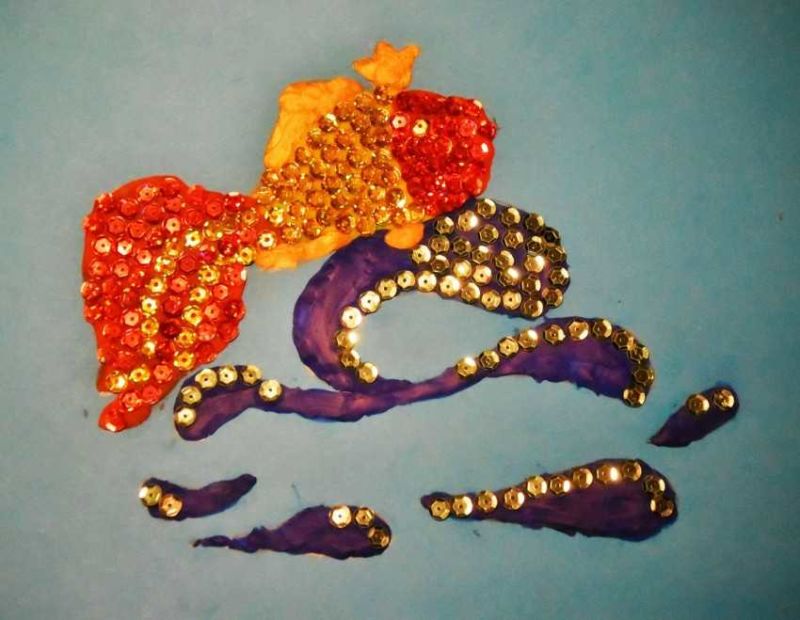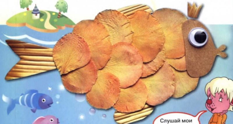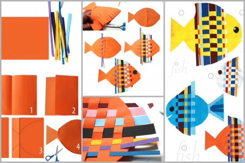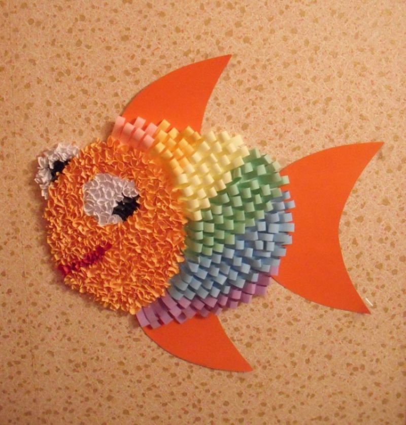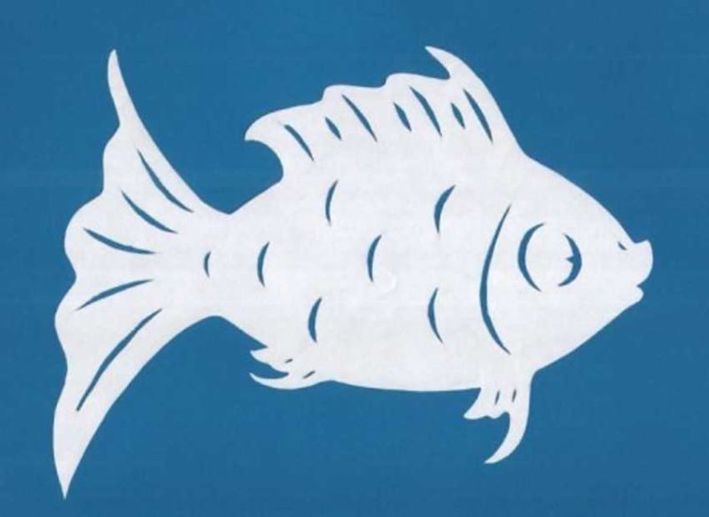 Възможно е да се създадат очарователни риби с помощта на шаблони, които могат да се използват като шаблони или като основа за апликацията. Те могат да се направят просто като се нарисува силует на лист цветна хартия или като се разпечата готова картинка, намерена в интернет.