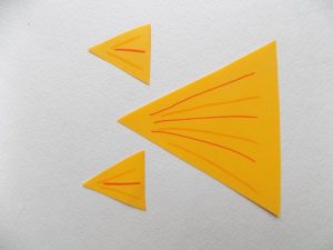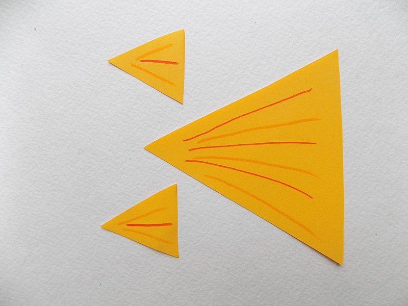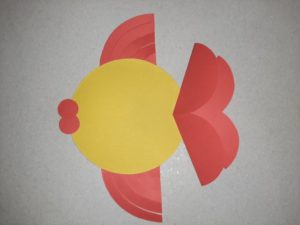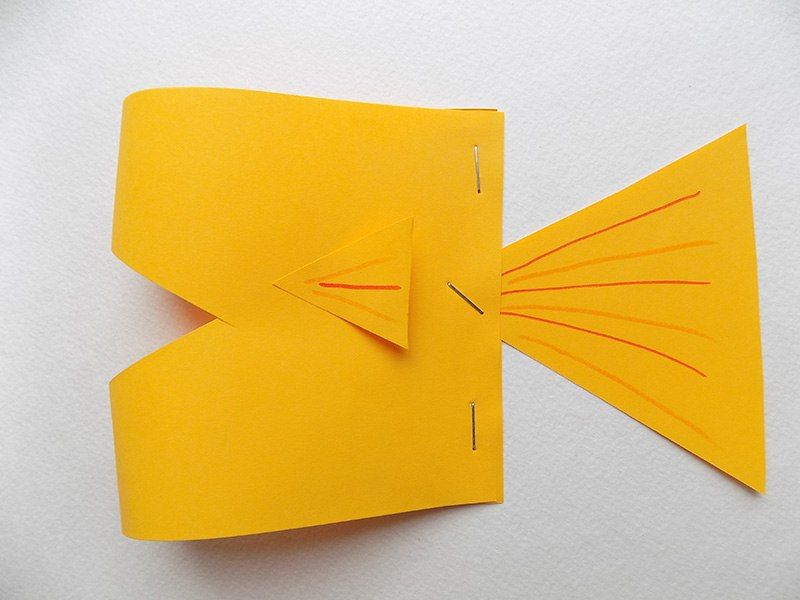 - Когато най-основното е готово, можете да направите от хартия в различни цветове останалите необходими детайли. Затова изрежете устата, очите, опашката и перките.