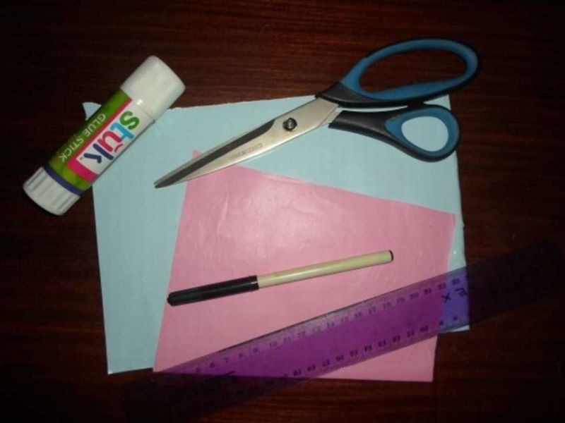 - От двустранна хартия в желаните от вас цветове изрежете много еднакви по размер тесни ленти и залепете краищата на всяка от тях;