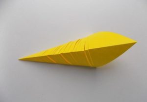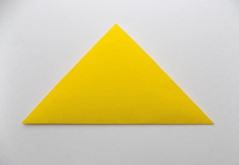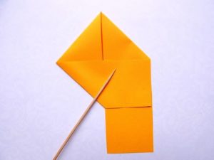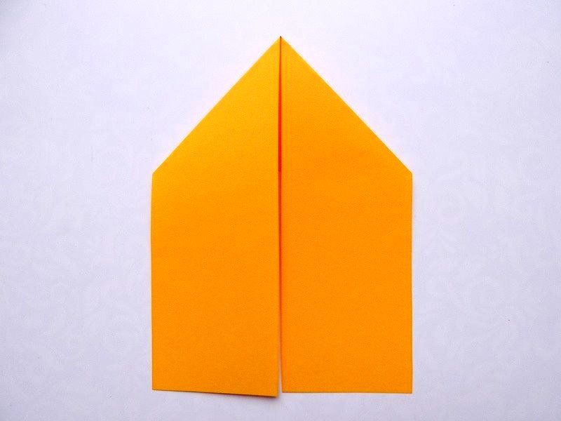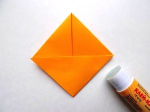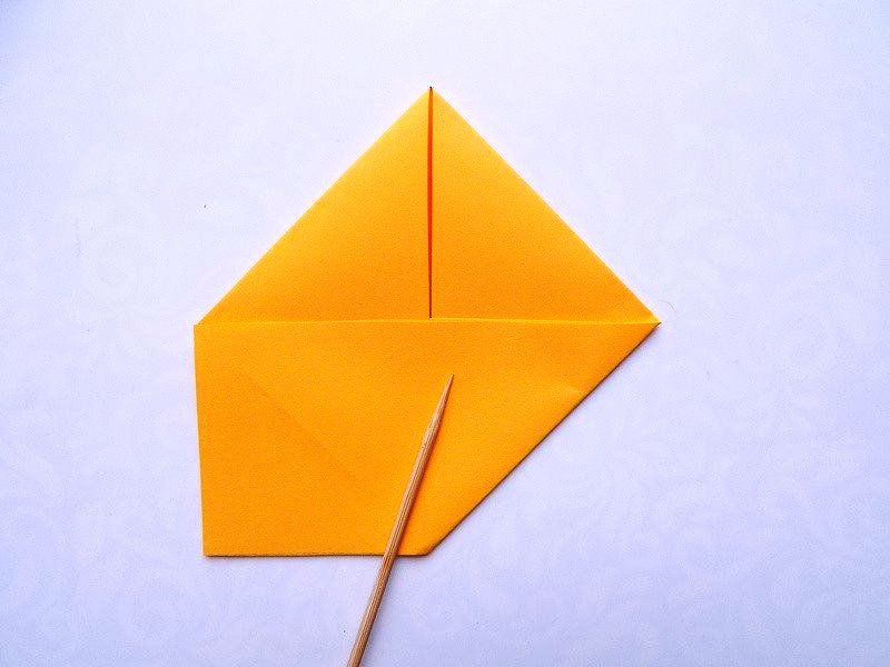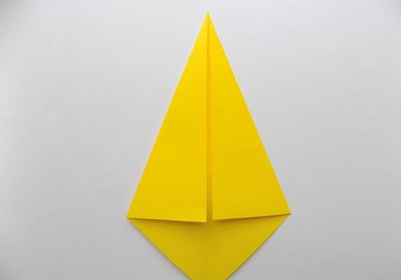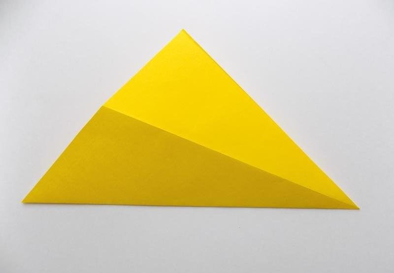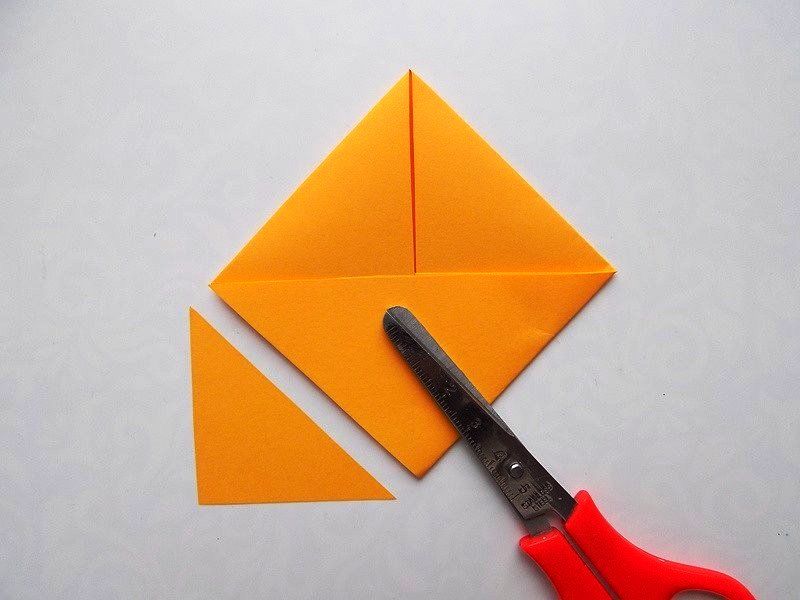 - Сгънете ъглите от страните на един от триъгълниците към средата, като ги застъпвате. Това ще служи като опашка