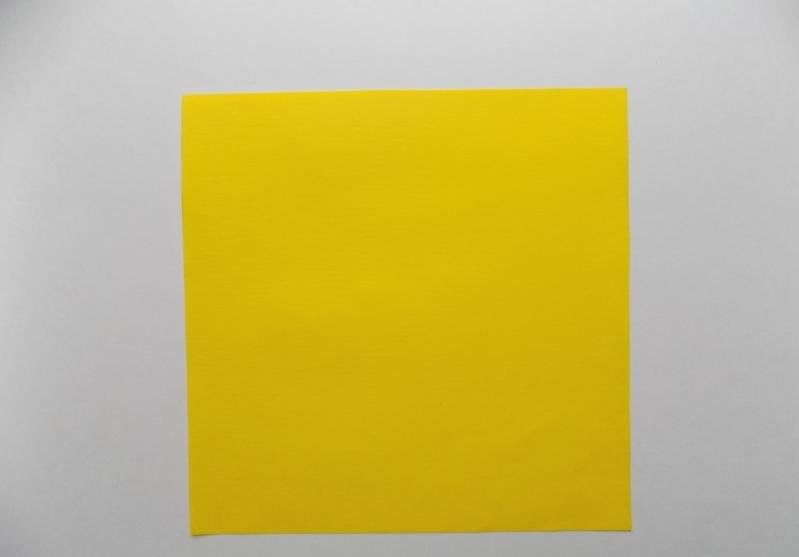 - Вземете квадрат от цветна хартия и го сгънете по двете хоризонтали, както и наполовина;