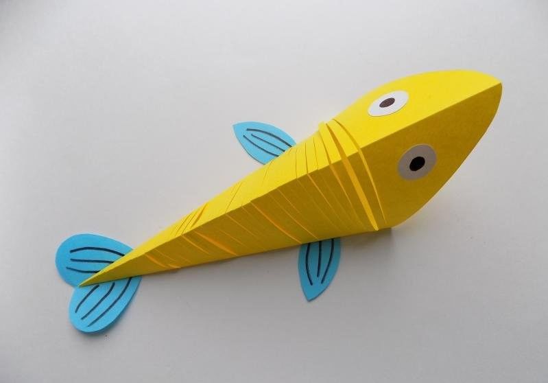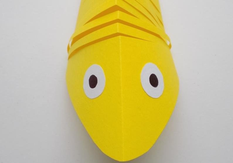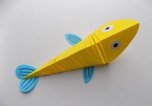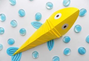 - След това прикрепете око, направено от хартия или пластилин. Перките и опашката могат да се изрежат от цветна хартия във всякакви цветове.