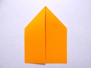 - Вземете обикновен правоъгълен лист хартия и го сгънете наполовина. След това по линията на прегъване внимателно го разрежете на двойка еднакви парчета;