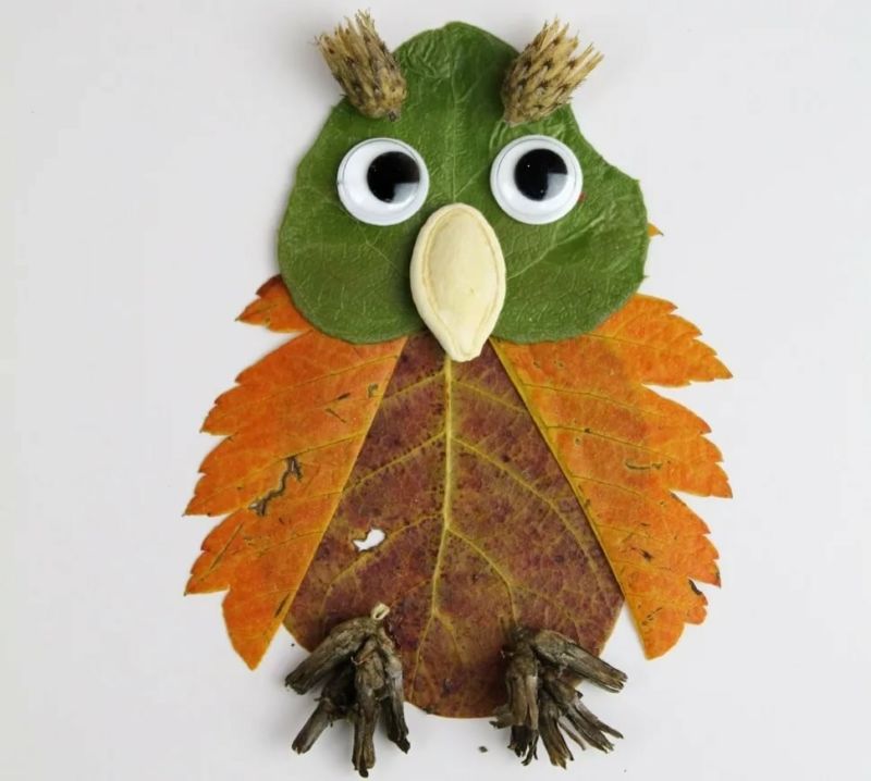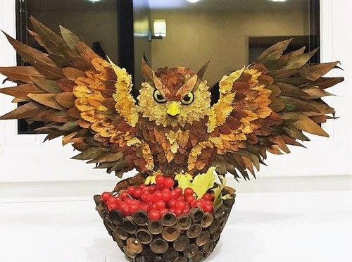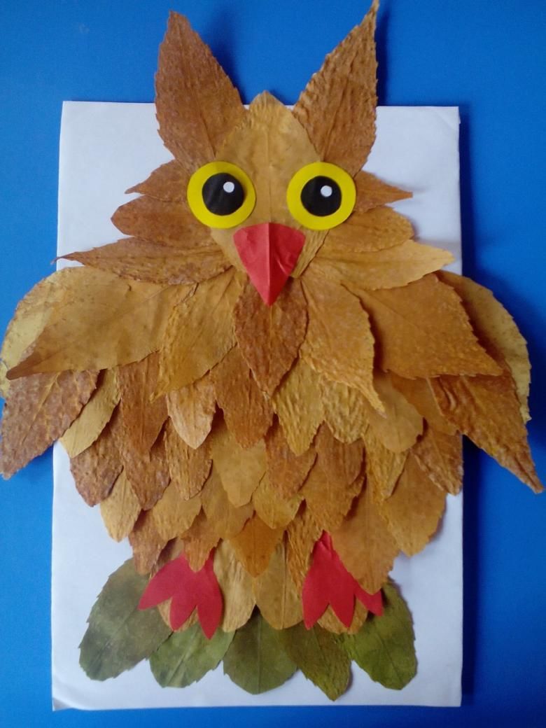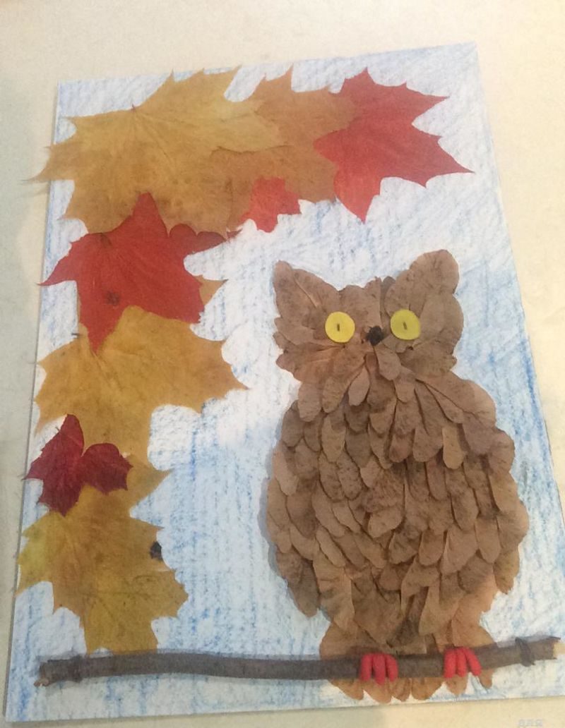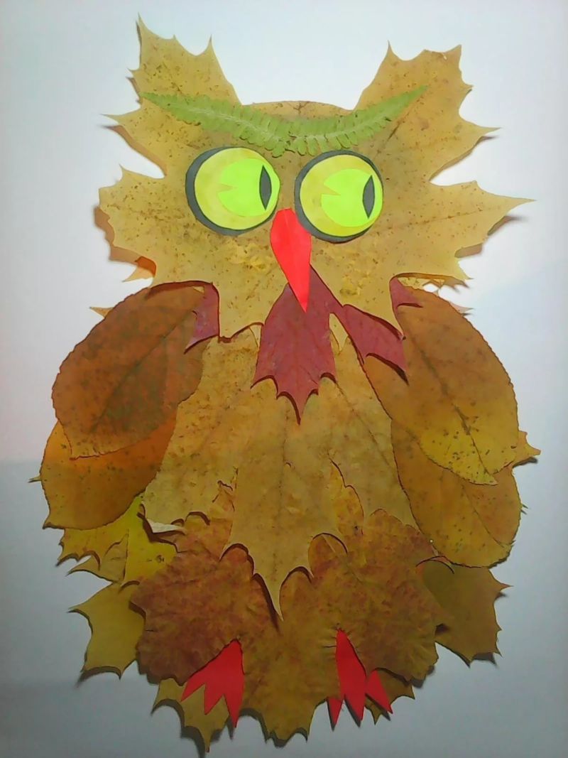 Красивата апликация на бухал е лесна за създаване след разходка в есенната гора или парк, когато наоколо има много листа в различни цветове. Не е рядкост да се правят такива занаяти за детска изложба.