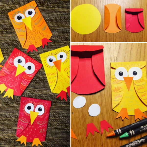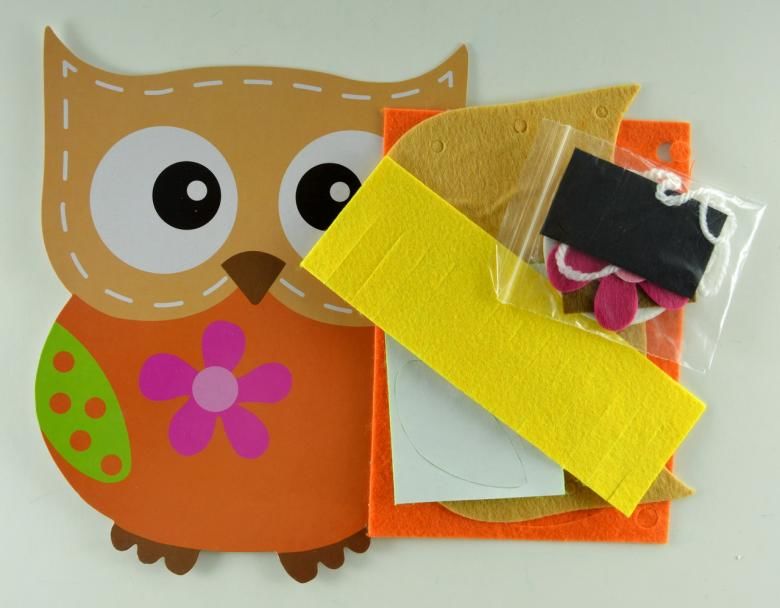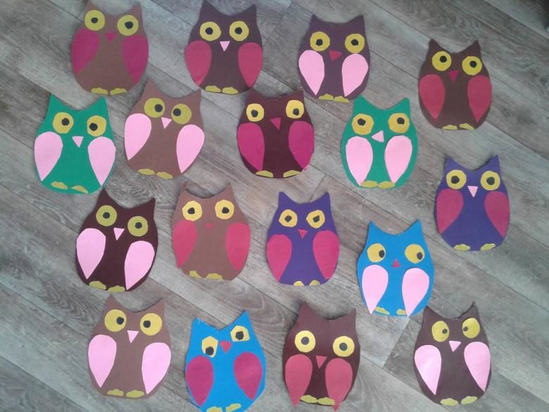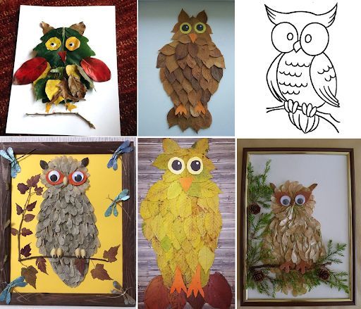 Хартия, плат, картон, памучни дискове, парчета кожа и естествени материали са подходящи за детското творчество. Апликираният "бухал" се счита за достъпен предмет за насърчаване на творчеството.