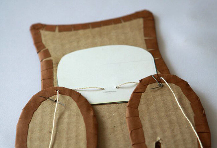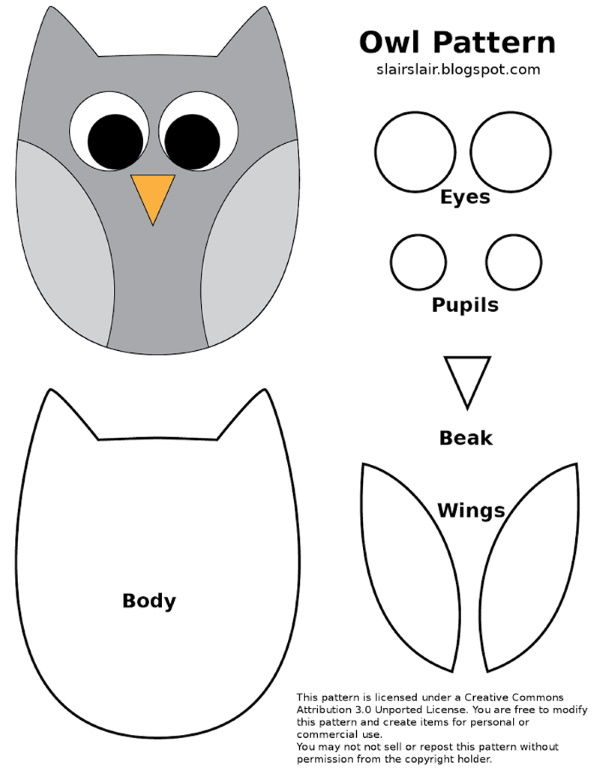 Тялото може да се изработи с помощта на шаблон за апликация на сова от гладка или цветна материя, която съответства на цвета на перата на птицата.