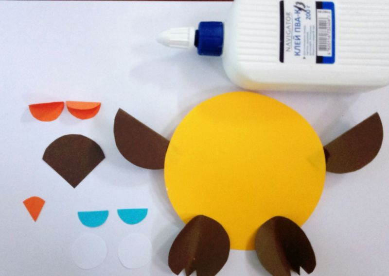 - Направете вежди или уши под формата на снопчета с прорези и ги поставете в диска, за да завършите главата на героя.