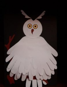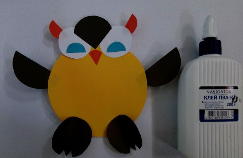 - парченца цветна хартия за очите, клюна и лапите на совата;