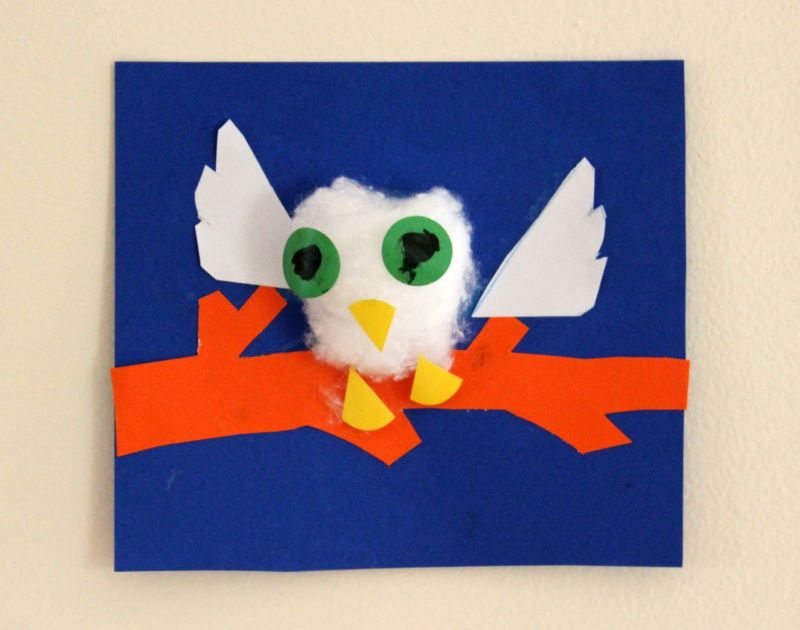 Един такъв материал е памучната вата. Насърчете детето си да направи бухал от него.
