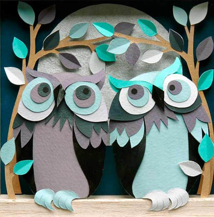 Декорациите не са задължителни. Клонът може да бъде допълнен със зелени или есенни листа. Зад бухала, звездите и луната от фолио, брокат или жълта хартия ще изглеждат добре на нощното небе. Ако моделът е зимен, допълнете го със снежинки.