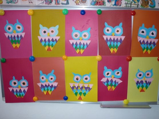 "Умната сова се изработва по същия начин като другите видове апликации, но декорациите са с различна тематика. В противен случай се използват същите инструменти (лепило, ножица) и материали: