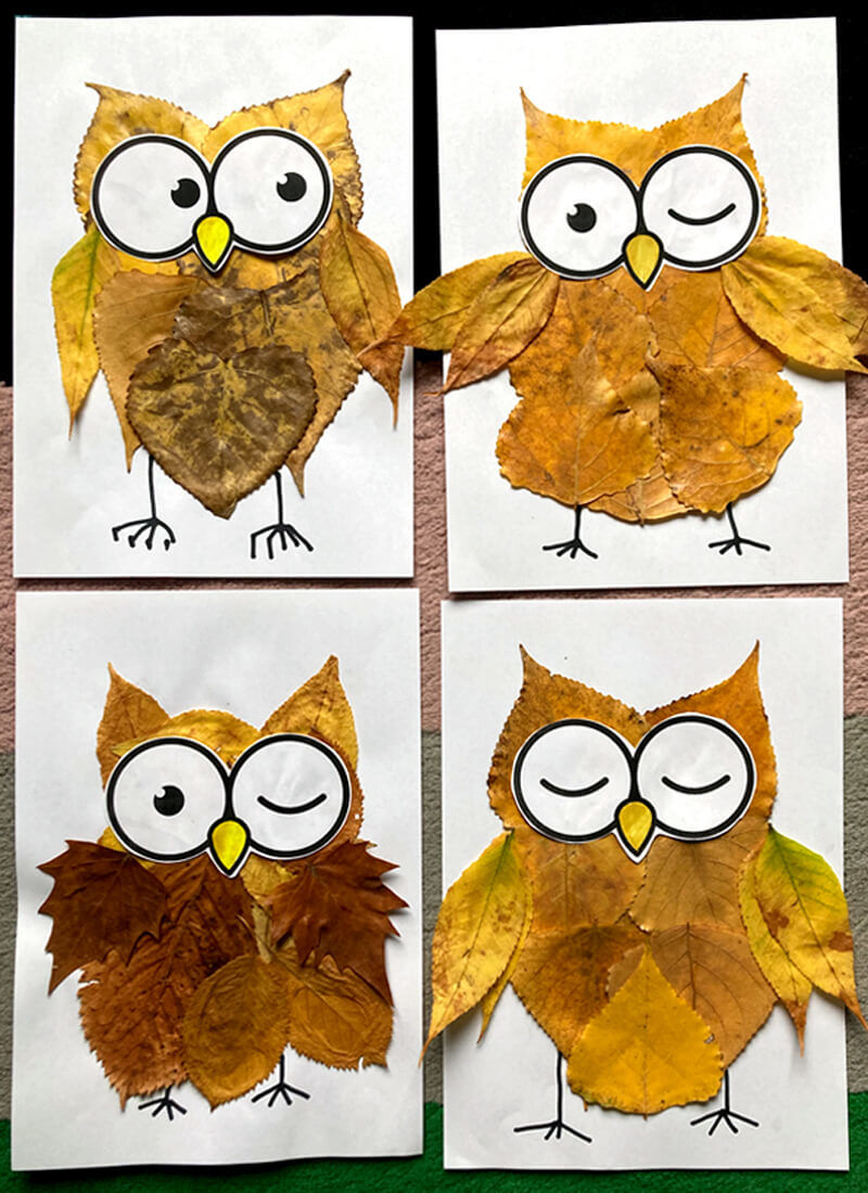 Апликация на бухал от листа