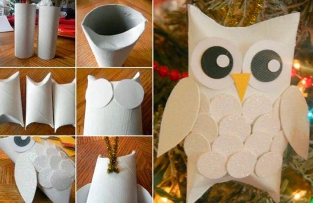 Моля, обърнете внимание! Бухалът може да се изработи от парченца хартия, бяла вата или изрезки от тоалетна хартия. Те могат да бъдат допълнени с пера.