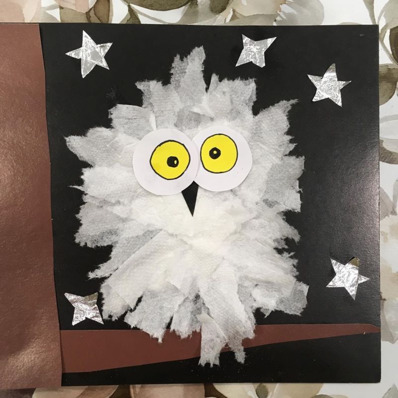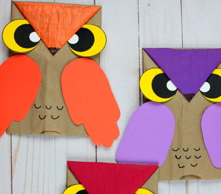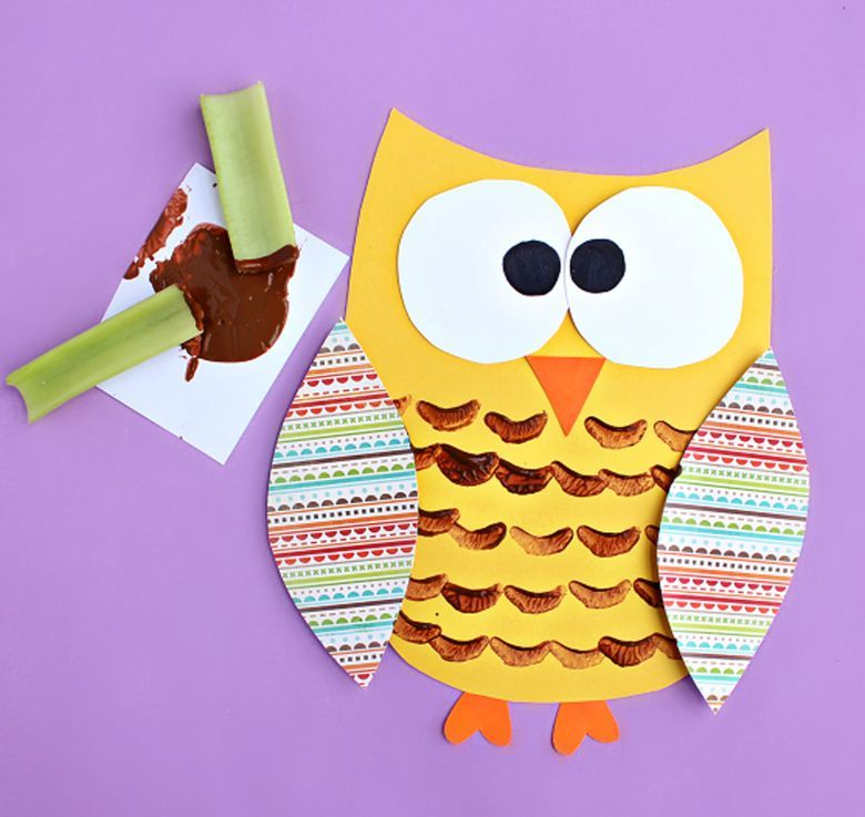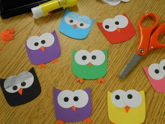 Използвайте занаятчийски материали и картон, за да направите апликация във формата на сова.