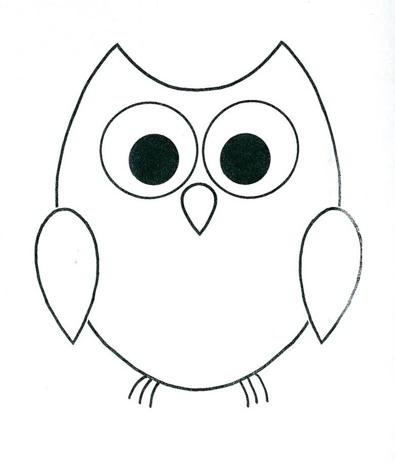Частите са готови за изрязване от картон, кожа или дебел плат. Очите с очила и шапката са основните атрибути на "умната сова", така че възрастните трябва да участват в изработването им. Апликацията може да бъде допълнена с ъглова учебна дъска с букви на заден план.